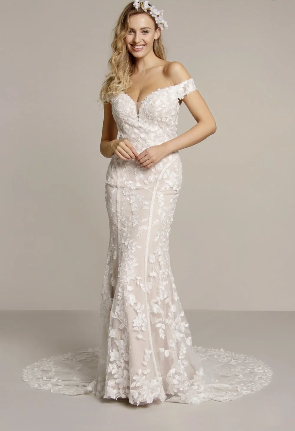 Bella Discounted ex sample size 16 fitted lace wedding dress by