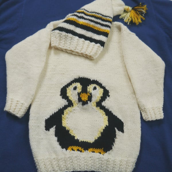 Knitting Pattern Child s Penguin Jumper and Hat Folksy