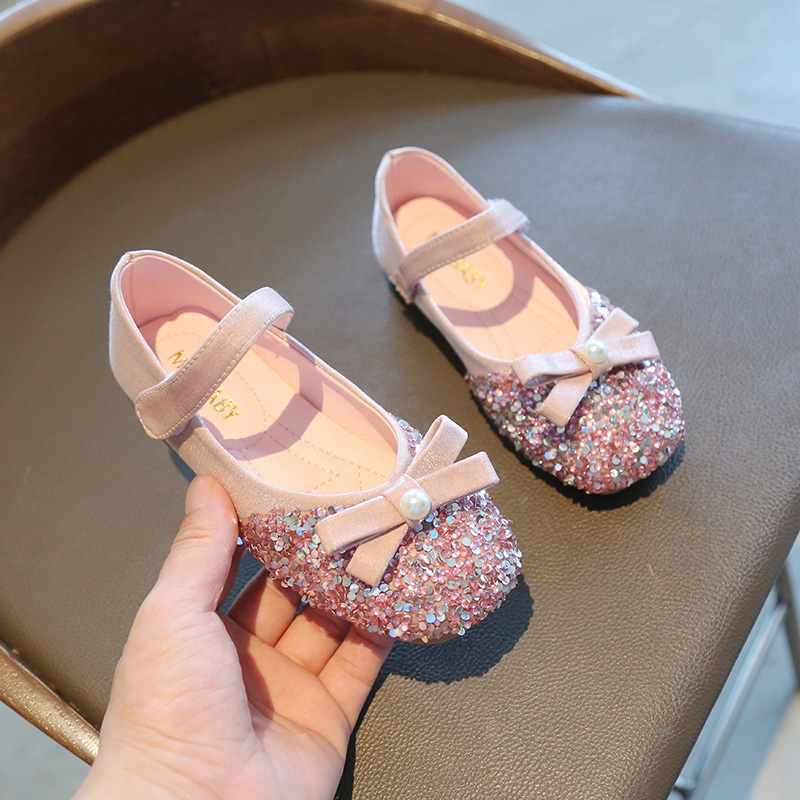 Kids Leather Shoes For Girls Princess Glitter Children High Heel