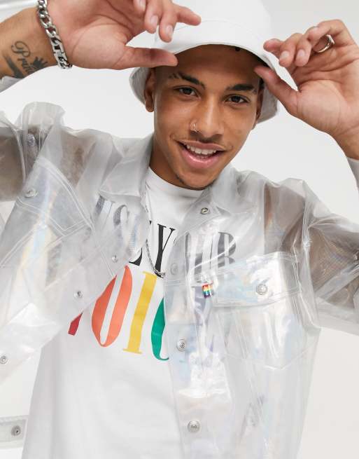 Levi s Pride Oversized Trucker Jacket Clear Transparent Rainbow Tab Sz M RARE