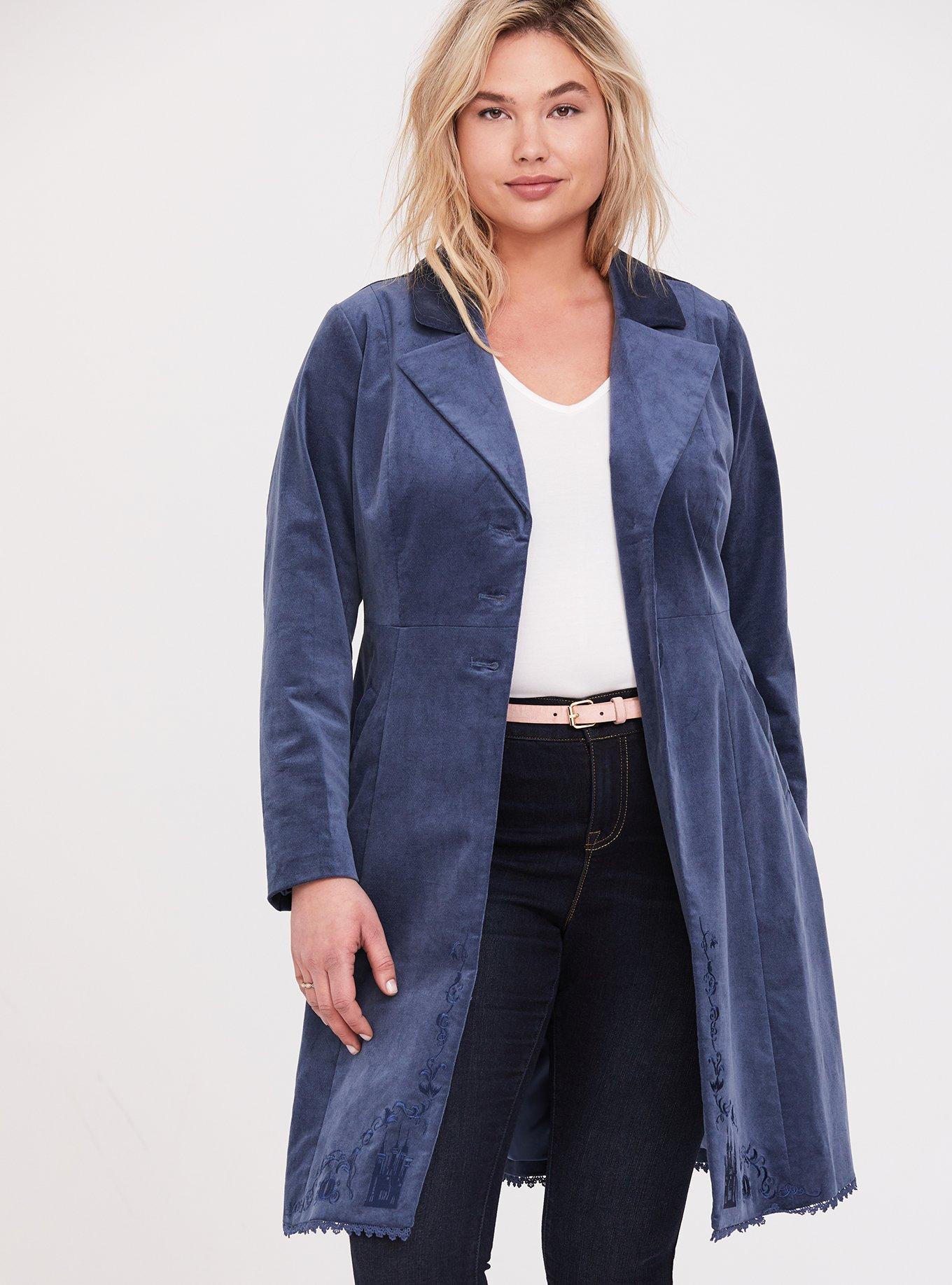 Plus Size Disney Cinderella Embroidered Blue Velvet Fit Flare