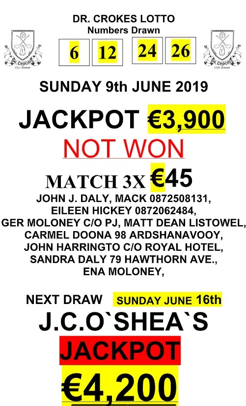 Lotto numbers for 26 shop june 2019, Crotta Gaa The Crotta Hurling club lotto results. Thanks shop
