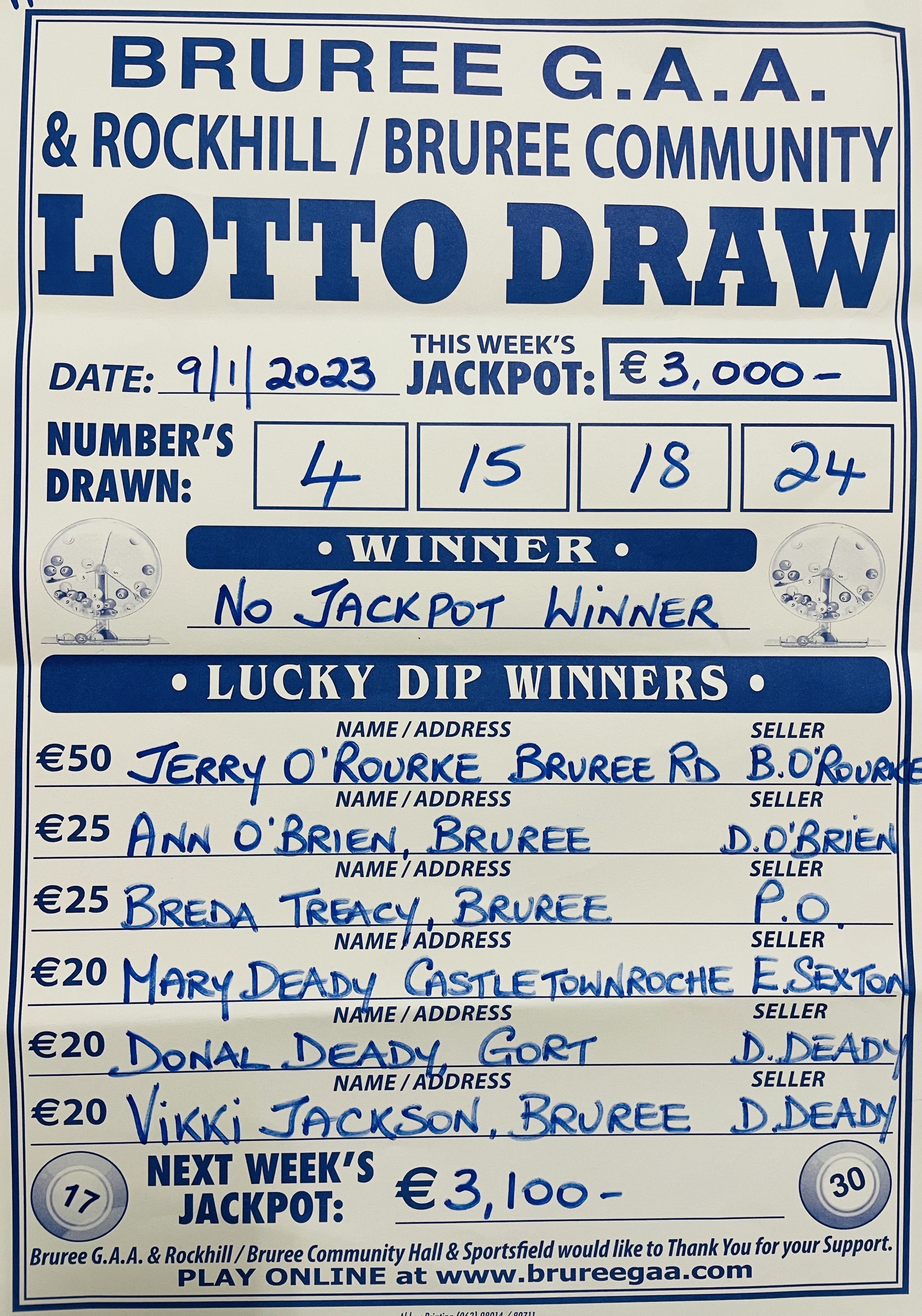 Lotto numbers for the 9th of shop january, Bruree GAA Lotto Results 9th January shop