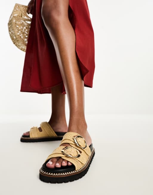 River Island raffia double buckle sandals in cream