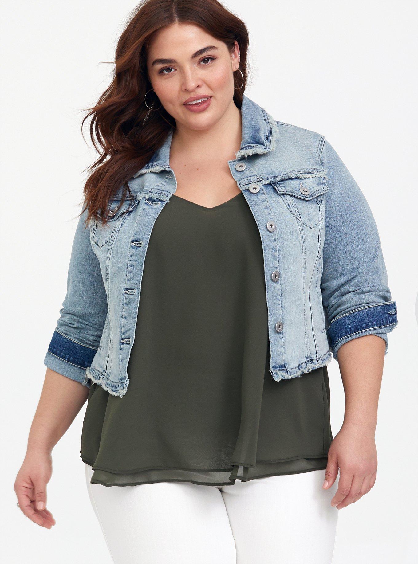 Cropped denim jacket size shop 20, Plus Size Crop Denim Jacket Medium Wash Torrid shop