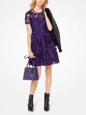 Michael kors feather embroidered shop dress, Feather Embellished Corded Lace Dress Michael Kors shop