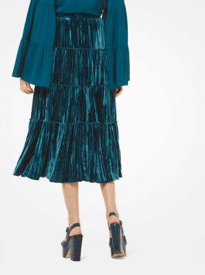 Michael kors shop velvet skirt, White Stuff Mia Velvet Tiered Midi Skirt Teal 6 shop