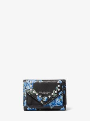 Michael kors shop wallet floral, Studded Floral Calf Leather Small Pocket Wallet Michael Kors shop