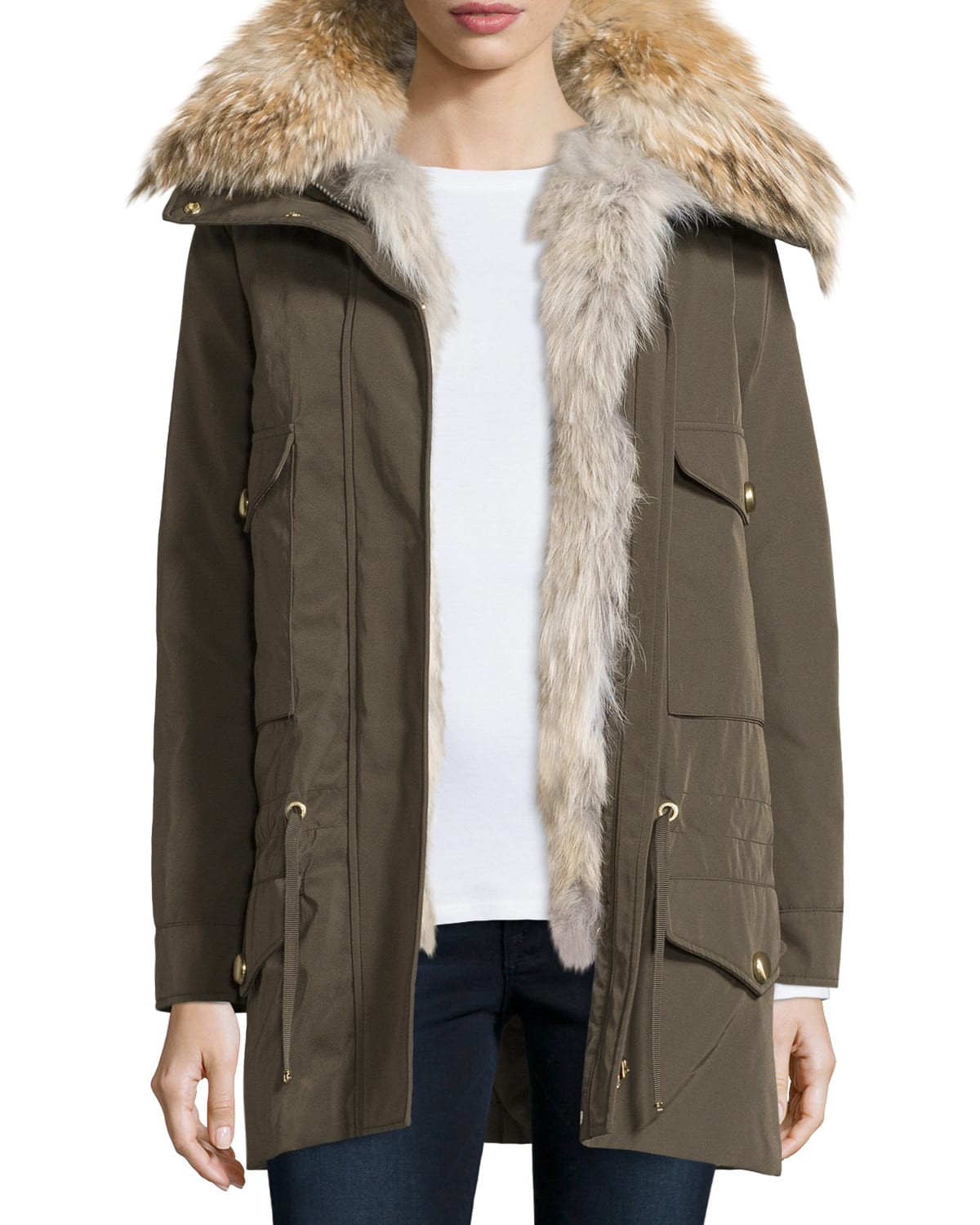 Margarita Fur Lined Gabardine Parka Olive