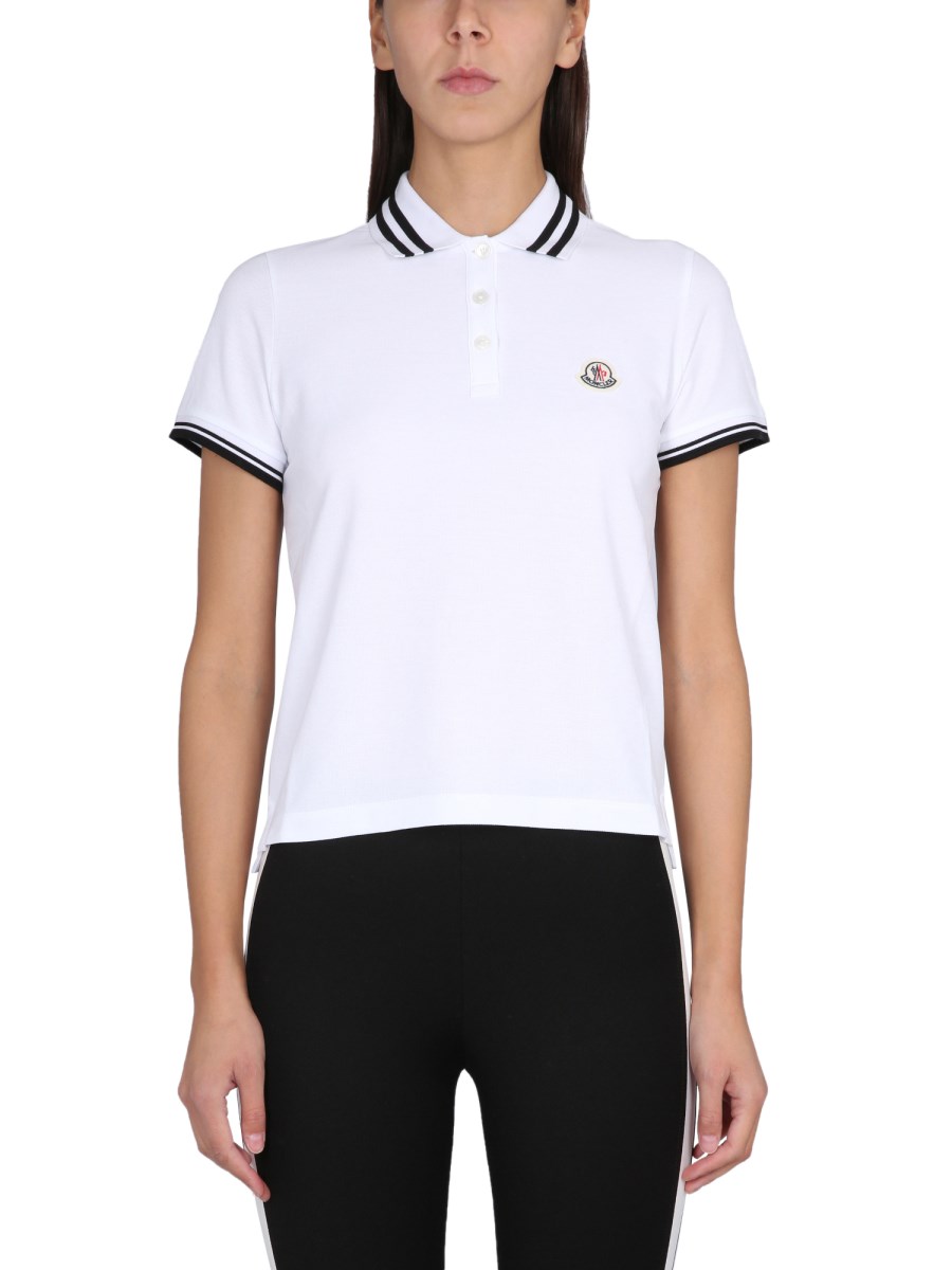 Moncler shop womens polo, MONCLER COTTON POLO SHIRT WITH LOGO PATCH Eleonora Bonucci shop