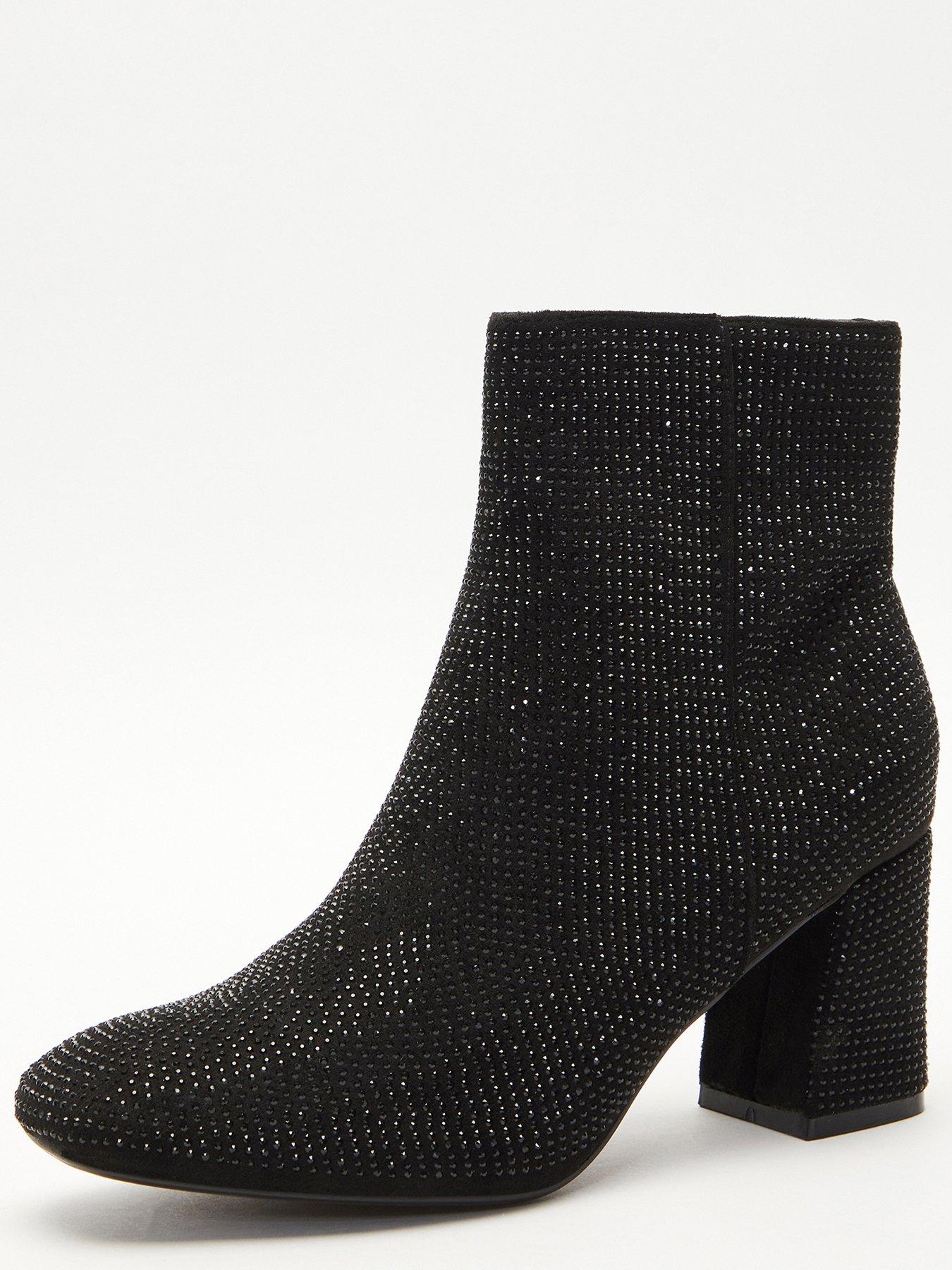 Diamante black shop ankle boots, Quiz Black Diamante Heeled Ankle Boots very shop