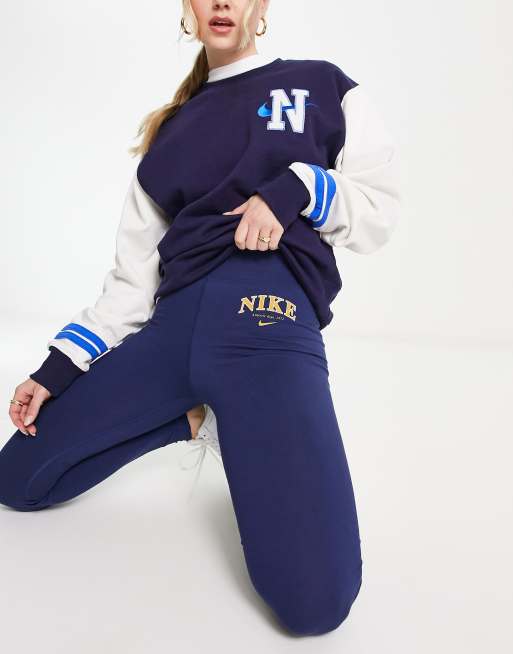 Nike Unisex retro athletics leggings in midnight navy and gold ASOS