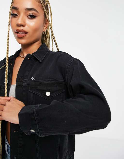 Calvin Klein oversized denim jacket with embroidered logo in black