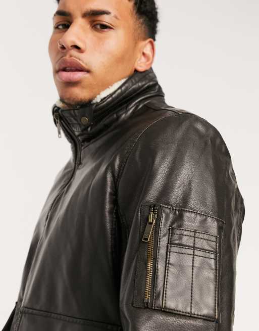 Dockers faux leather maverick aviator bomber jacket with sherpa collar