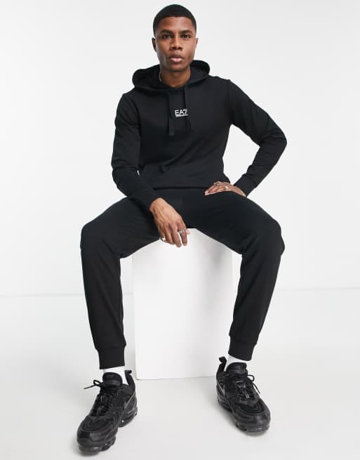 Armani EA7 Train Core ID central logo overhead hoodied french terry tracksuit in black