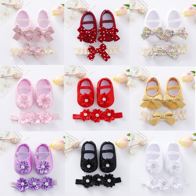 1 year shop baby shoes, 2Pcs set Baby Shoes Infant Girl Non Slip Soft Sole Bowknot Rec m shop