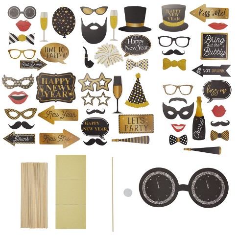 Blue Panda 50 Piece New Year s Eve Photo Booth Props Black And