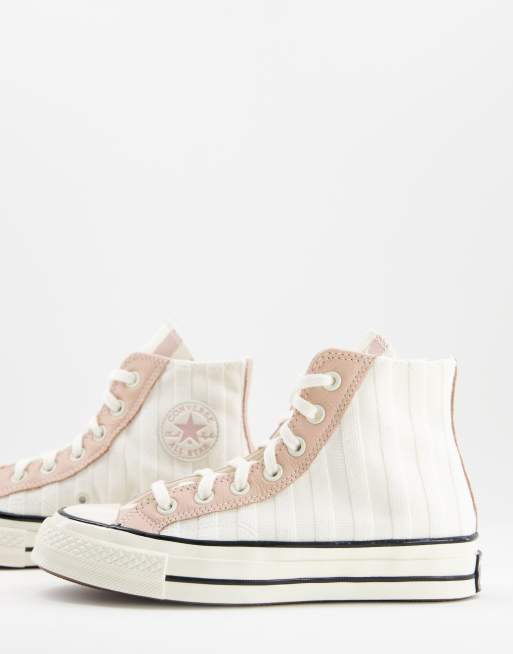 Chuck 70 Striped Terry Cloth High Top in Egret Pink Clay Black
