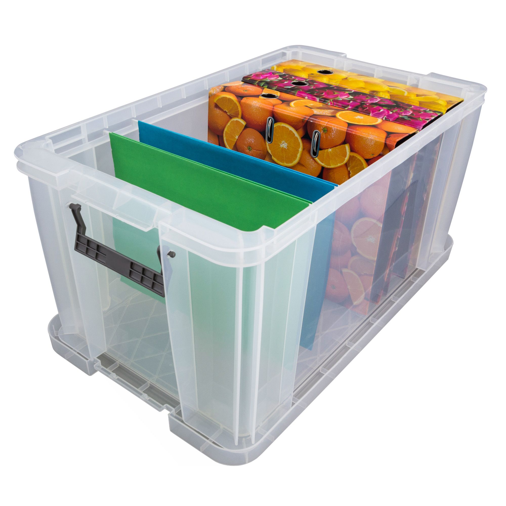 Plastic stackable shop storage boxes, Whitefurze Allstore Heavy duty Clear 54L Large Plastic Stackable Storage box with Lid shop