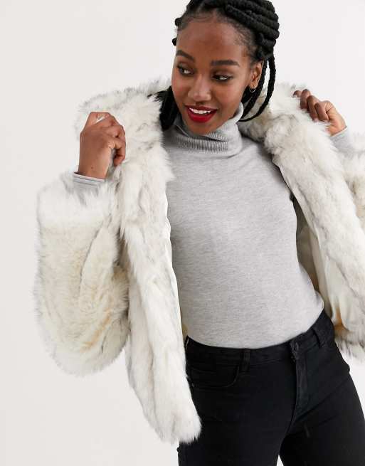 ASOS DESIGN cropped hooded faux fur jacket in cream ShopStyle