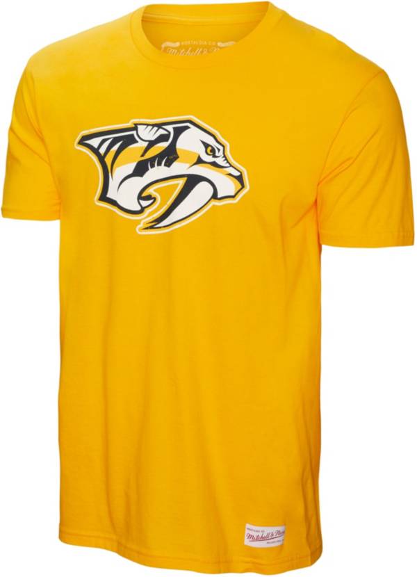 Preds shirts shop, Mitchell Ness Nashville Predators Distressed Logo Gold T Shirt shop