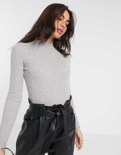 Frill turtleneck shop, Ileen Heather Grey Ruffle Turtleneck Sweater En Merci My shop
