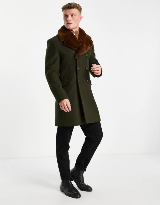 Fur collar double breasted shop coat, Bay Double Breasted Faux Fur Collar Coat shop