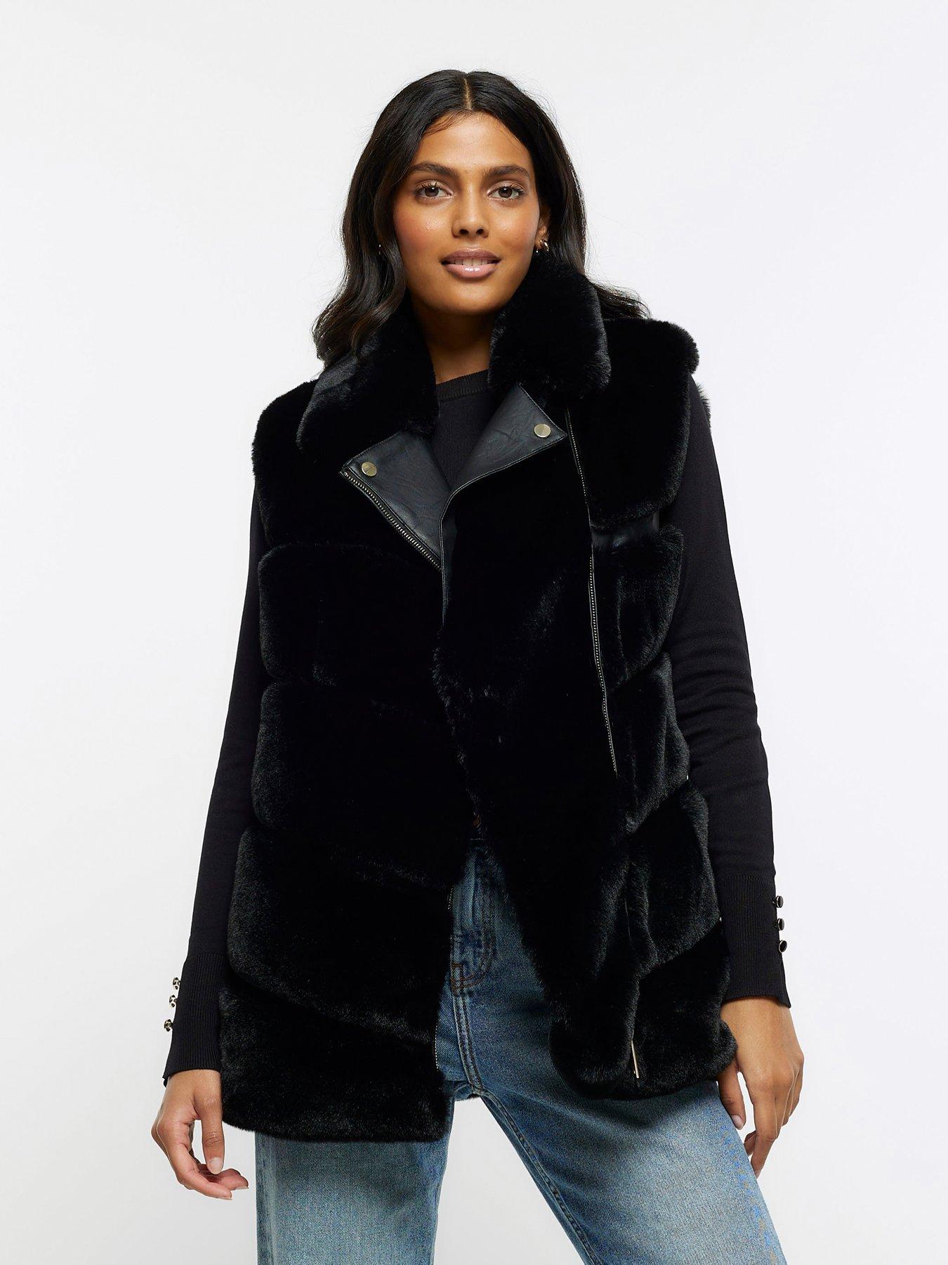 River Island Fur Panelled Biker Gilet Jacket Black Very Ireland