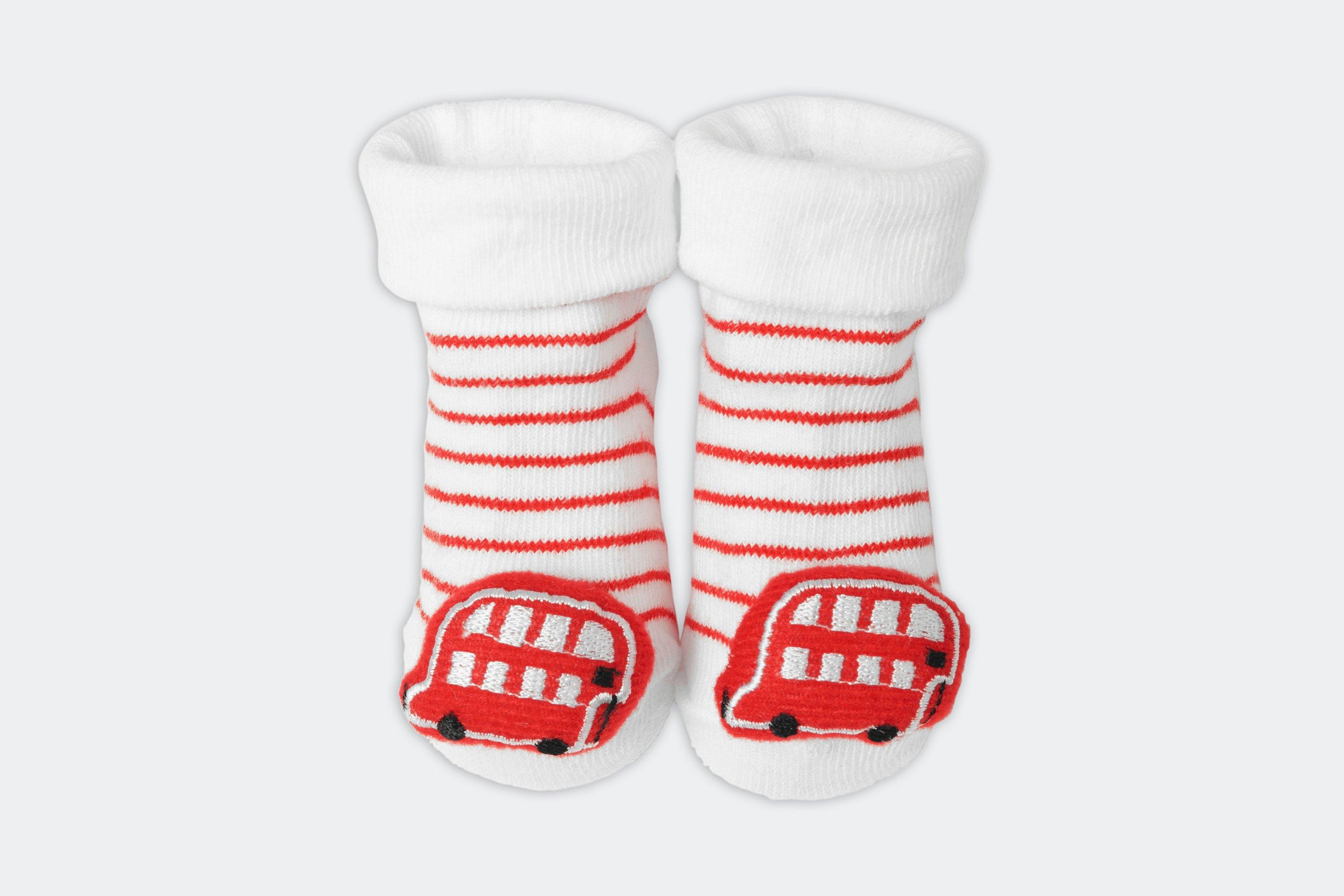 Red and white striped shop baby socks, Arsenal Baby Bus Rattle Socks shop