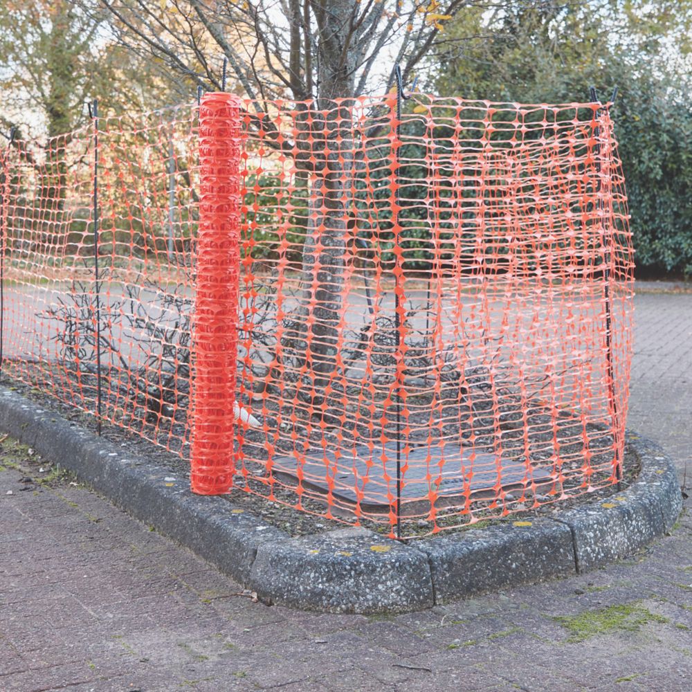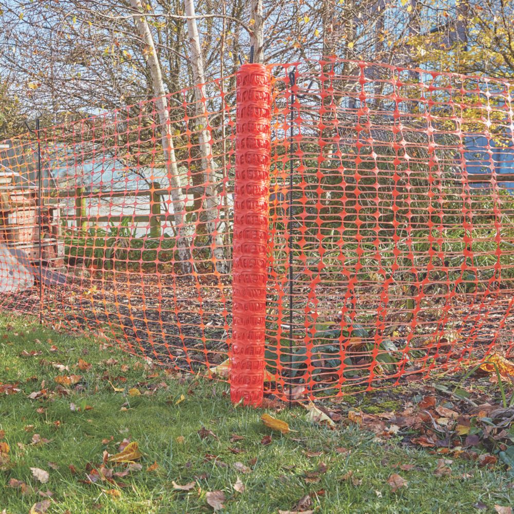 Red plastic shop mesh fencing, Orange Barrier Fencing with Polyester Posts 85cm x 25m Huck shop