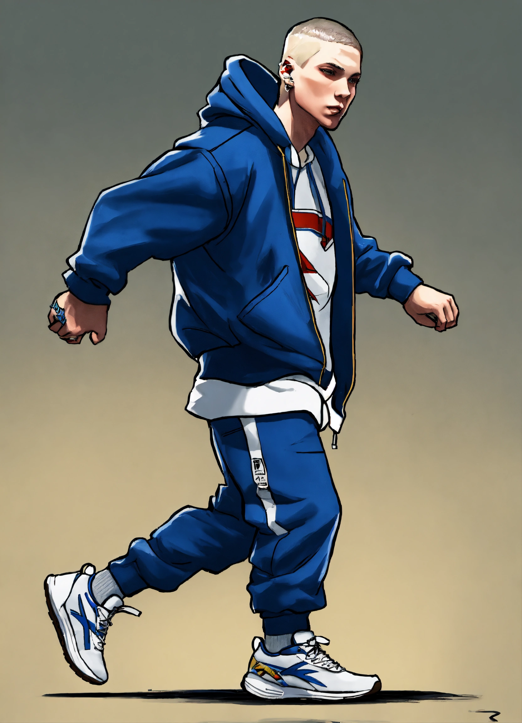 Lexica Handsome cartooned Eminem with a dressed in Reebok hoodie