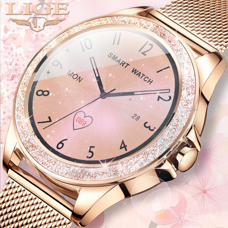 LIGE 2021 New Fashion Rose Gold Smart Watch Women Waterproof