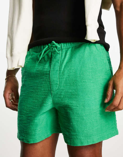 ASOS DESIGN wide textured shorts in shorter length in green ASOS