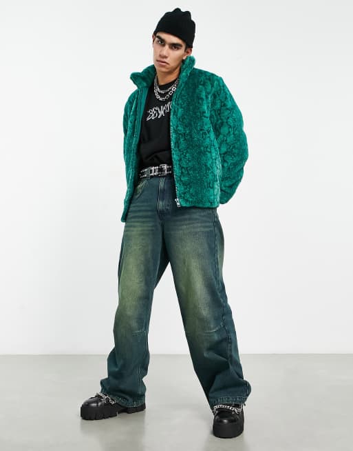ASOS DESIGN faux fur bomber jacket in green snake print ASOS