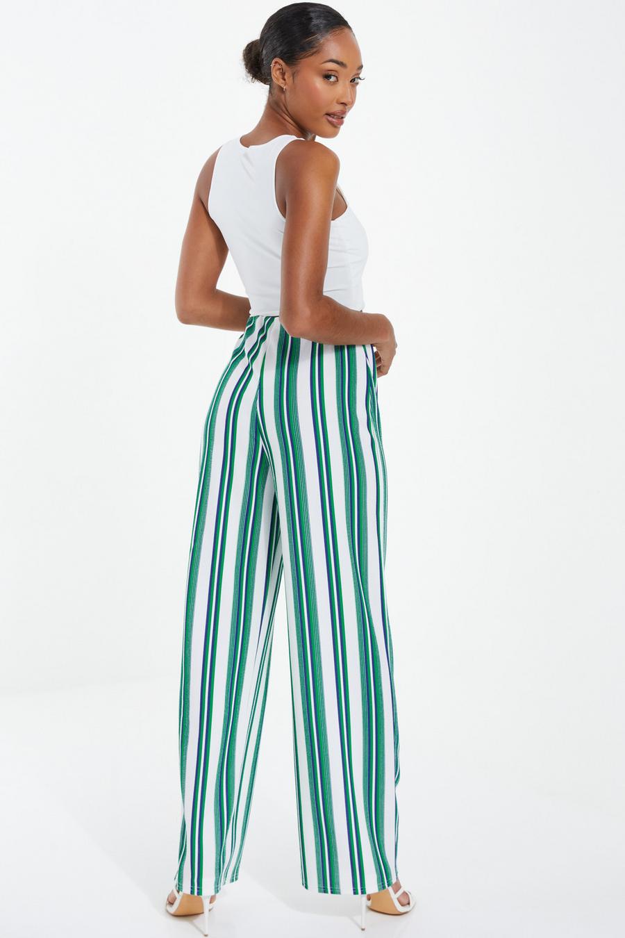 Jade Green Stripe Print Palazzo Trousers Quiz Clothing