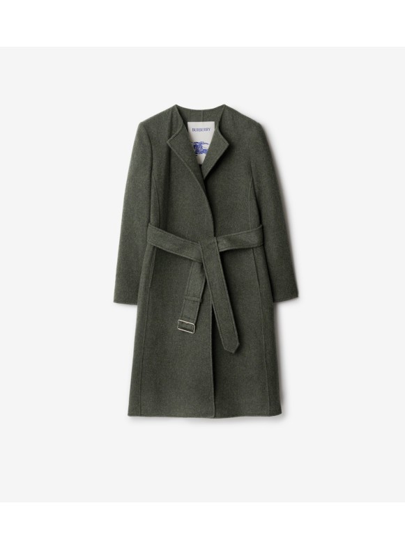 Sophisticated Wool Cashmere Trench Coat with Rabbit Topcollar