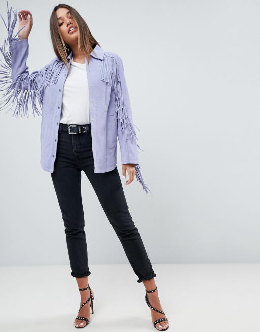 Grey shop fringe jacket, Grey Nappa Suede Jacket With Fringe Size S Etsy Australia shop