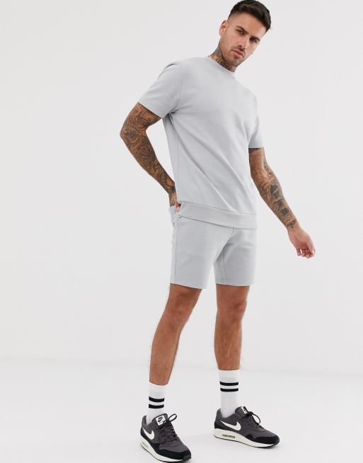 ASOS DESIGN short sleeve tracksuit with shorts in light grey