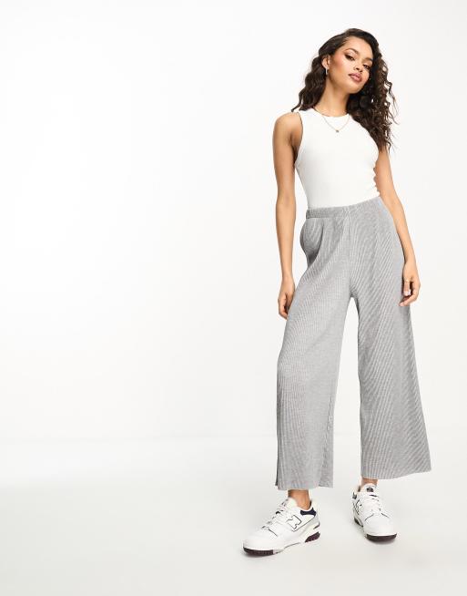 ASOS DESIGN Petite plisse wide leg trouser culottes in grey