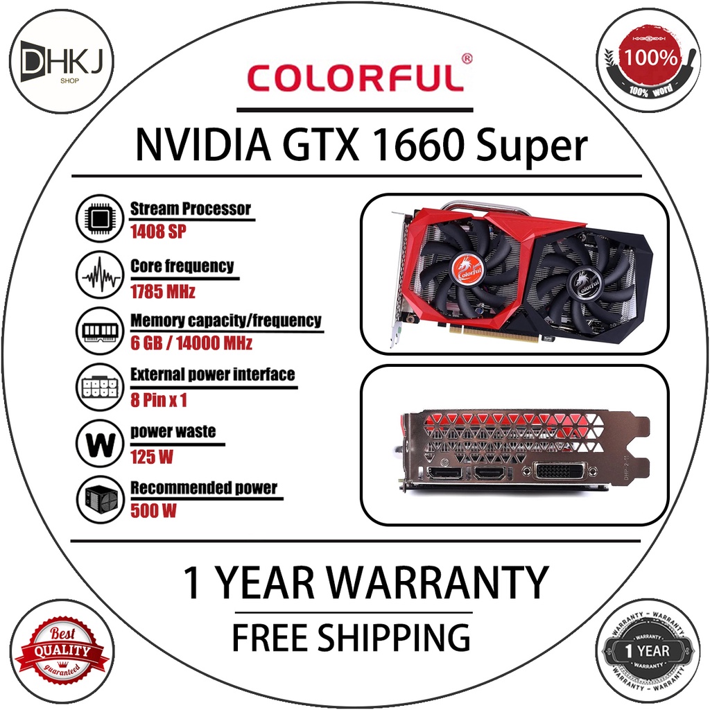 USED COLORFUL Geforce GTX 1660 SUPER 6G Graphics Card 6GB GDDR6