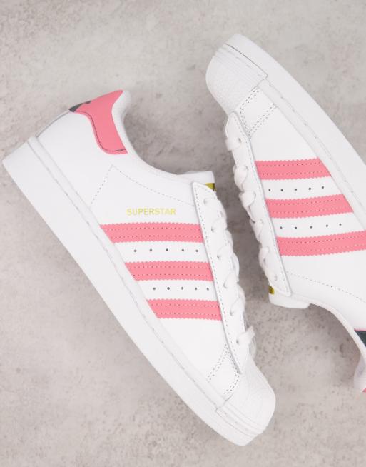 Adidas shop superstar pink, adidas Originals Superstar trainers in white with pink detailing shop