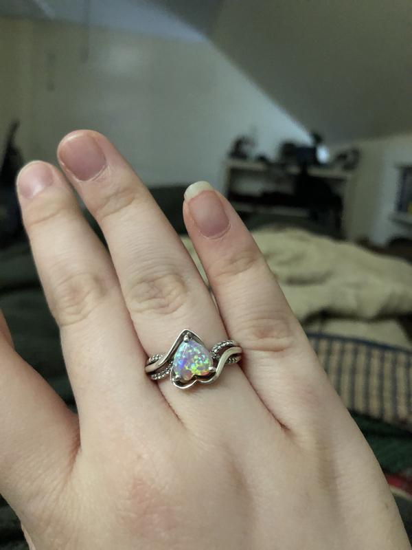 Amazon AIMAOMI Heart Shaped Opal Ring for Women Wedding Band