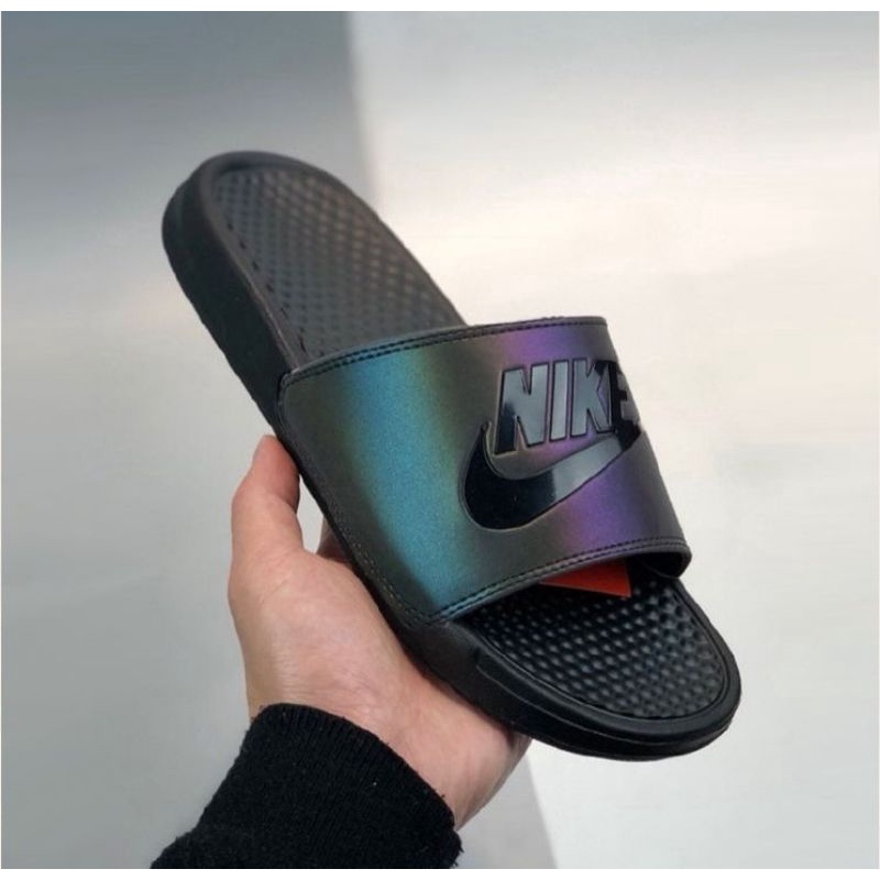 OEM Nike Swoosh Benassi Slides No Box Holographic Print Mens