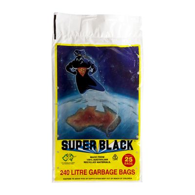Bin liner Super Black 240L Heavy Duty Black x 100 Kaplan
