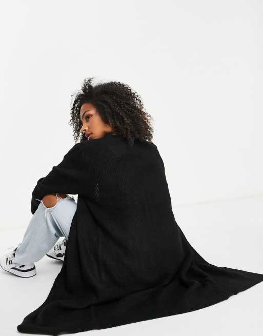 Black Ribbed Knit Midi Cardigan New Look