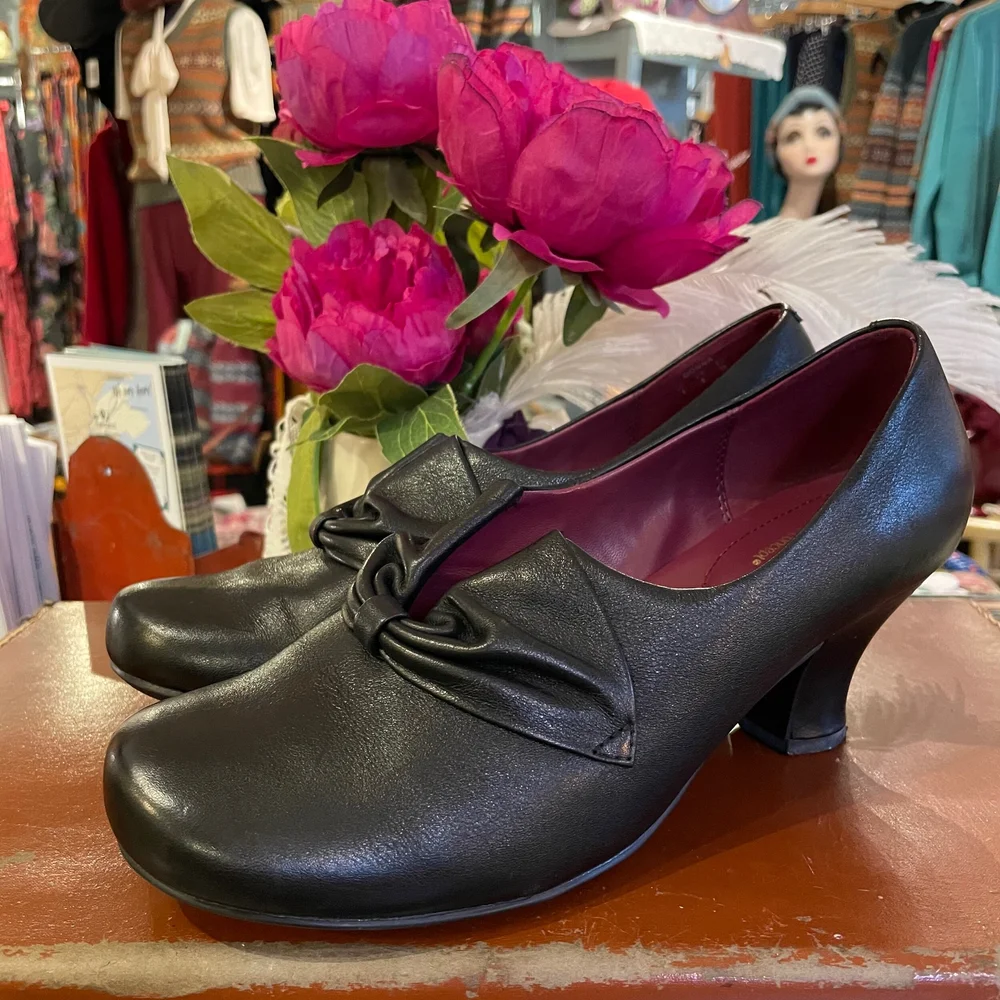 Hotter Donna Black Leather Heels UK6 Vintage Quine