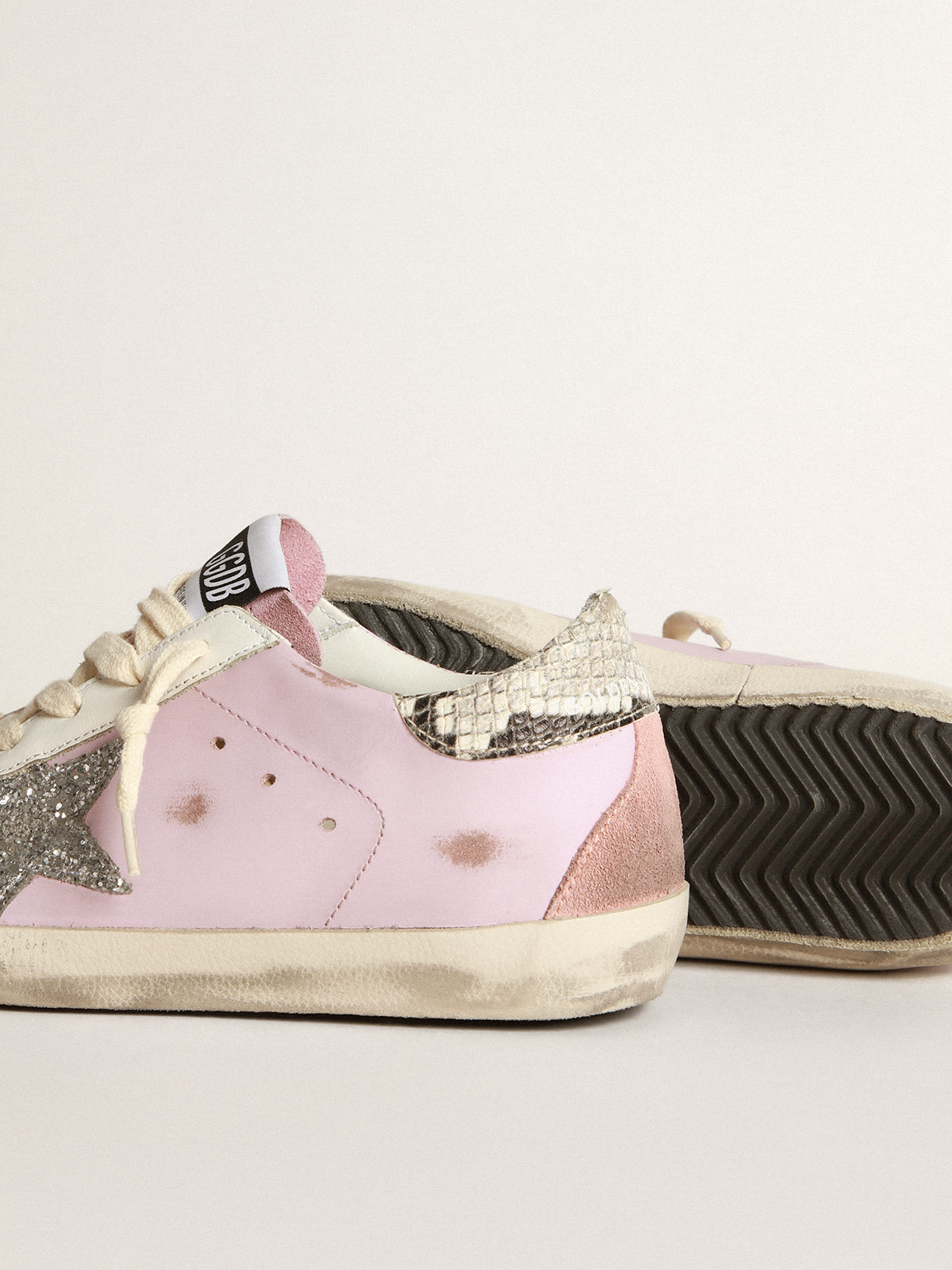Super Star Golden Goose Femme Ltd Avec toile Rose S rigraphi e Et Contrefort En Cuir Imprim Python Blanc Rti School