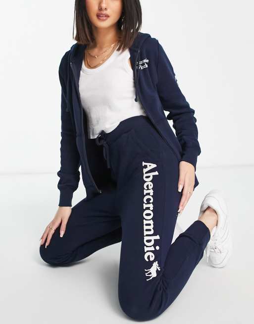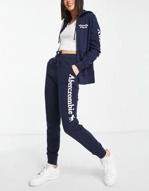 Abercrombie Fitch Pantalon de jogging en polaire avec logo sur le c t Bleu marine