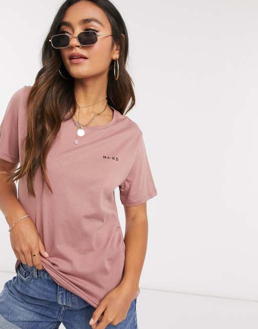 NA KD T Shirt Basic Logo 1044 000097 0176 003 Rosa Loose Fit