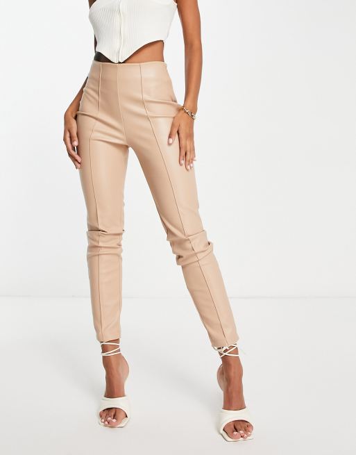 Tan shop cigarette trousers, ASOS DESIGN stretch faux leather cigarette trouser in stone shop